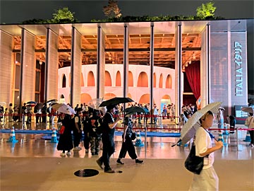 大屋根リングから見たイタリア館。20:00の予約をもらっています。