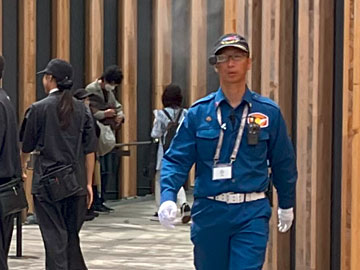 日本館の警備の人は、右目にヘッドマウントディスプレイをかけていました。