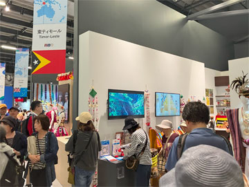 スタンプを押しています(中央)。各国のブースにスタンプがあるので、閑散としているブースはありません。うまいことを考えたものです。
