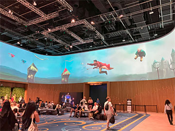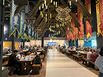 フードホール。ホグワーツ魔法魔術学校の大広間をイメージした壮大な空間。