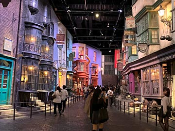 ダイアゴン横丁。ロンドンの魔法界の商店街。ホグワーツ魔法魔術学校の生徒たちが学用品や魔法界のものを購入する場所。