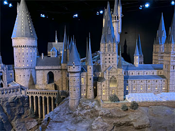 ホグワーツ城の模型。昼になったり夜になったりします。