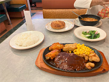 退園して、近くのサイゼリヤ 練馬春日店で早めの夕食。ミックスグリル(¥650)、ジョッキビール(¥400)など総額¥2,400で豪遊。
