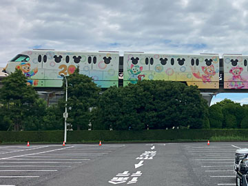 イクスピアリ に来ました。駐車場から見えたリゾートラインは、ダッフィーのラッピングでした。