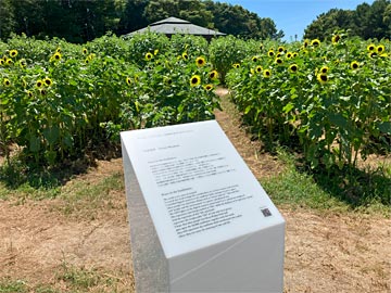 ひまわり畑に、宮島達男氏の「Peace to the Sunflowers 」を展示。平和に暮らせる社会を希求した作品が夜間に出現します。「自然とアート」「時間と生命」「人と環境」をテーマに、ひまわり畑に29本のデジタルカウンターが設置されます。デジタルカウンターは、9から1までカウントダウンし、それぞれのデジタルカウンターが、かけがえのない一人一人の「命」を表現しています(リンク)。我々は夜間までいなかったのでカウントダウンは分かりませんでした。
