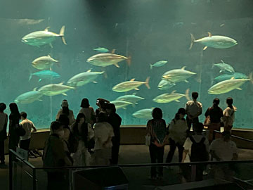 マグロの水槽。衝突防止の貼ものは無くなっていました。