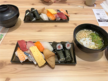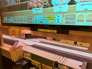 近くのスシロー田無店(11時オープン)、少し待って開店と同時に入りました。お寿司は回転しておらず、大きなモニターで注文します。モニター上で、回転ずしのように、お寿司の画像を流すことが出来ます(タッチして注文)。