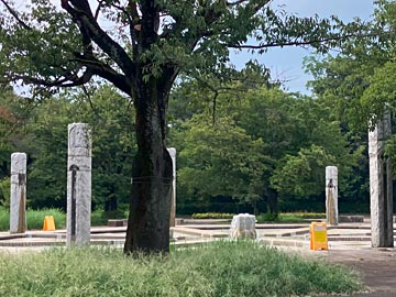 柱から水がしたたっていて涼し気です。この日は、車の外気温計が40℃まで上がりました。