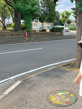 隣のスーパー「とりせん大泉店」の駐車場横に、実物のカラーマンホールがありました。