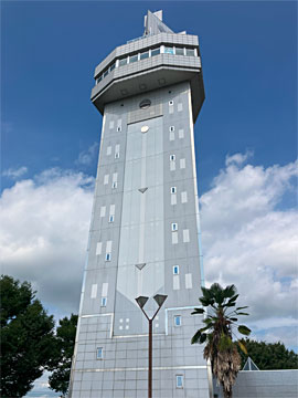 シンボルタワー未来。高さ59.5m、展望室まで36m。ふるさと創生事業により建設されたタワーです(Wiki)。1Fで「オーランドさん」のマンホールカードをもらいました。