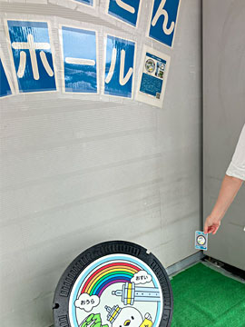 2Fにあった見本のカラーマンホールと記念撮影。