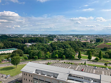 屋上(地上40m)にも上がれる、というので階段で上がりました。町役場の奥は東京、横浜方面ですが、この日はスカイツリーは見えませんでした。