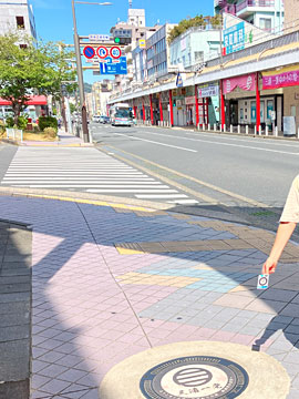 道路を渡ったところに、実物のカラーマンホールもありました。