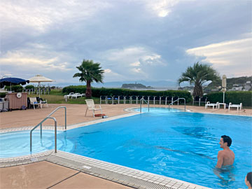 泊っている人はプールも無料、入ってみました。このところの高気温のせいか?ぬるかった。ジャグジーもありました。