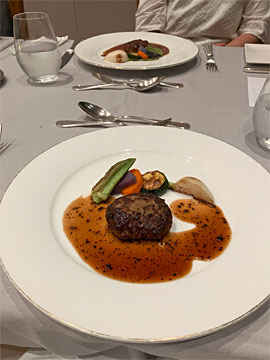 メインディッシュは「黒毛和牛と黒豚のハンバーグステーキ トリュフ風味のリッチなソース」。
