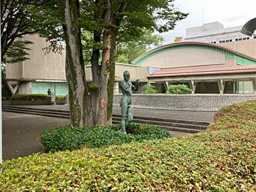 中央のスタチューは本郷新氏の『戦没学生記念像「わだつみのこえ」』、左奥は佐藤助雄氏の『桃源』。