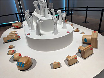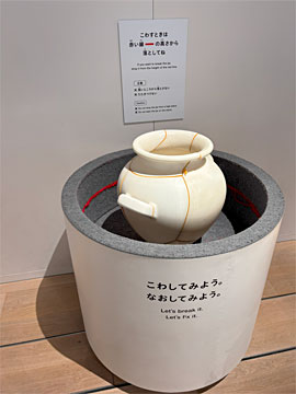 「こわすとなおす」。高そうな壺をこわすことができる立体パズル。なおす達成感も味わえる、という展示。磁石でくっつくのですが、大きい壺は(もっと小さな壺もいくつもある)組み立てるのが難しかった。