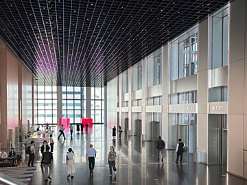 7FとB2Fを結ぶたくさんのシャトルエレベーター。近未来的な感じです。