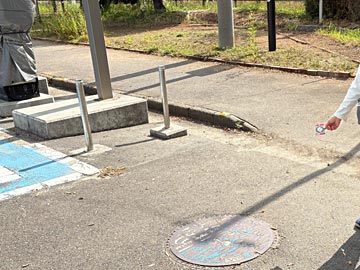 階段の横にあった、見本のカラーマンホールと記念撮影。