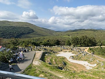 展望台から見た秋吉台の草原。灰色の石灰岩がゴツゴツしています。