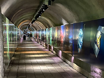 入ったところは三億年のタイムトンネル。地球誕生から現代までの秋吉台をイメージした56枚の絵が飾られ、地球誕生までさかのぼることができます(リンク)。