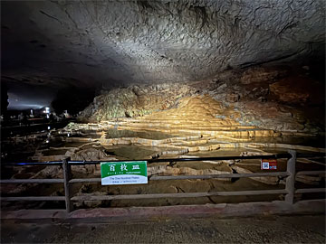 百枚皿。水に溶けた石灰分が沈殿して皿のようになった石灰華段丘で、秋芳洞見どころのひとつ。