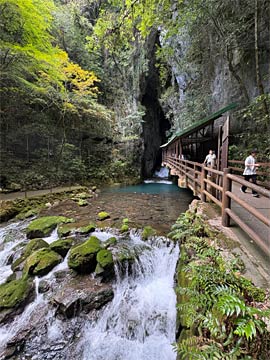 出口を出て振り返った風景。水も豊富に流れ出ていますし、神秘的でした。