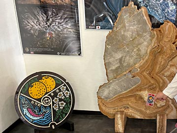秋吉台観光交流センターで秋芳洞の半券を見せて、ロゲットカードをもらいました。見本のカラーマンホールもありました。