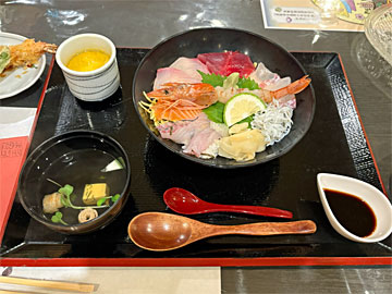 海鮮丼¥1,450。こちらのつゆは(他の店でも)甘かった。