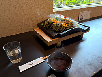 瓦そば2人前。瓦はアツアツなので、次第に麺がパリパリになっていって、それがまたおいしい。