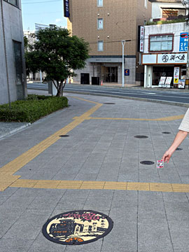 本物のカラーマンホールも、駅前の「家庭教師のトライ」の前にありました。