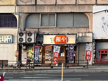 道路の反対側から見た「和や(なごや)」。ホテル推薦のお店の一つで夕食を食べに行きます。
