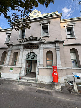 下関南部町郵便局は現役の郵便局。丸ポストを考案したのは下関の人とのこと。