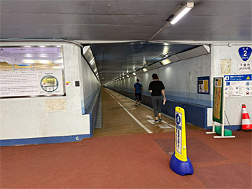 関門トンネルは、旅の途中で人道トンネルが付いていることを知り、急きょ歩いて渡ってみました。以前、川崎港海底トンネルを渡ったことがありますが、あちらは東扇島という人工島に渡る人道の海底トンネルでした。関門トンネルは歴史もあり、本州と九州を歩いて渡れて、歩いている人も多かった。運動のため(?) 行ったり来たりしている人も見ました。