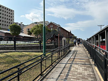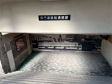 駅舎の横にある、「関門連絡船通路跡」。関門連絡船就航当時に駅から桟橋までの約100mを結んでいた通路のイメージ。