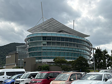 山口宇部空港近くの「ときわ湖水ホール」。ハナショウブのマンホールカードをもらいました。ときわ遊園地も併設してあり、家族連れがいっぱいいました。