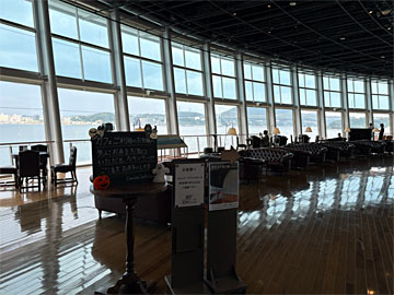 カフェからは、関門海峡がバーンと見えます。