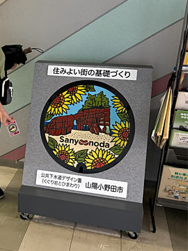 空港近くの「宇部市新川ふれあいセンター」。「宇部市制施行100周年記念のマンホールカード」をもらいました。
