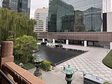 2Fのバルコニーから見たホテルオークラ。タクシーが頻繁に出入りしていました。