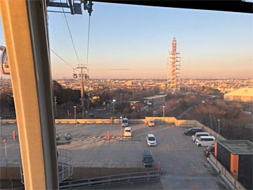 ゴンドラは前後4人ずつ乗れます。我々は後ろ向きに乗ったので、東京方面が良く見えました。