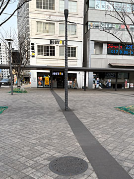 駅の観光案内所で「水辺の生き物のマンホールカード」をもらいました。白黒でした。本物のマンホールも駅の北口駅前にありました。