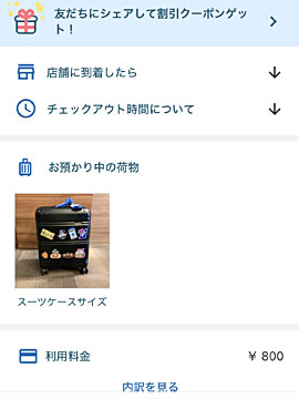 トランクを引きずりながら観光したくなかったので、ロッカーが空いていなかったら困ると思い、ecbo cloak(エクボクローク)というサイトで、駅の近くで預かってくれるところ(ホテルとかカラオケ店とか、今回はホテルのフロントに預けた)を予約していましたが…、