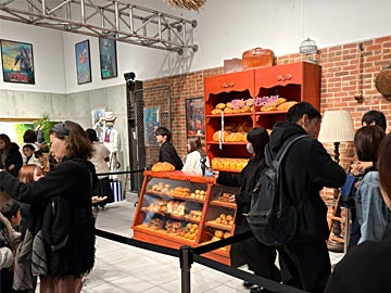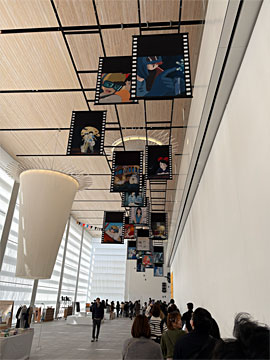 スタジオジブリ作品の公開年、そして「金曜ロードショー」で初放送された年がどんな時代だったのかを振り返りながら、映画の魅力に迫る、という企画です。年代順の展示は撮影禁止でした。