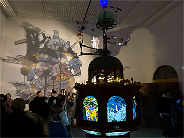 壁にスタジオジブリの乗り物や機械が映し出されます
