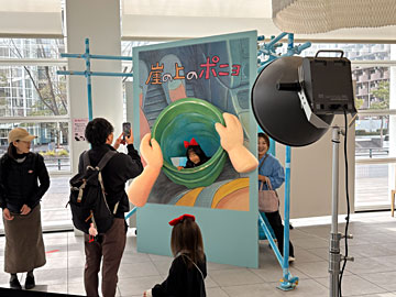 ジブリ映画ポスタースタジオ。ジブリを背景に写真が撮れます。
