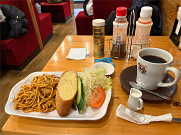アーケードの中にあるコメダ珈琲店 大分中央町店でランチ。ミートソースと大コーヒー(¥1,590)