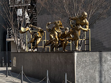 空港行きのバスの時間(14:02)まで、駅の近くを散策。大分市役所近く、昭和通り交差点の角にあったラグビーのモニュメント(スタチュー)。
