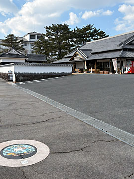 本物のカラーマンホールも駐車場の近くにありました。