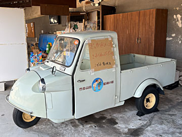 駄菓子屋の夢美術館前に展示されていたダイハツ・ミゼット。当方が子供の頃、八百屋さんが良く使っていました。