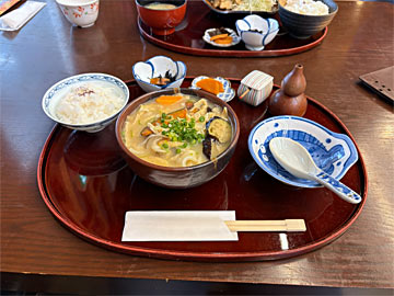 レストラン「旬彩 南蔵」でだんご汁定食の昼食(¥1,200)。ボリューム満点だった。